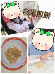 お煎餅は素朴な醬油と昆布だし味で、思ったより人気が高く完食する子が多かったです!
